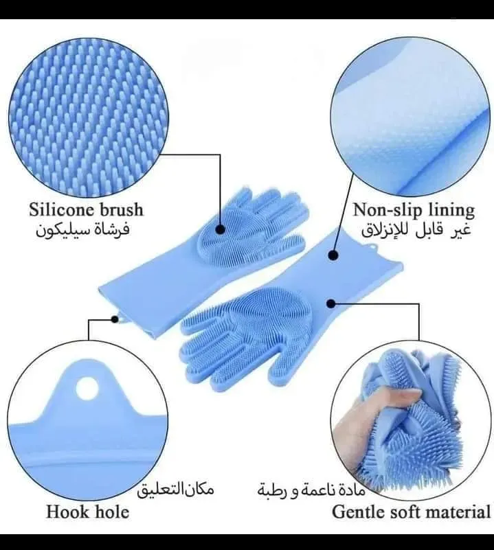 قفازات السيليكون لتنظيف الأواني والمطبخ متعددة الاستعمال لماذا يجب عليك شراء هذا القفازات؟ لأنها بديل مثالي للإسفنجات القديمة المليئة بالبكتيريا والفطريات والعفن، إن قفازات السيليكون السحرية المزودة بشعيرات للغسيل أداة التنظيف المثالية التي تساعدك على التخلص من الأوساخ والميكروبات من أي سطح