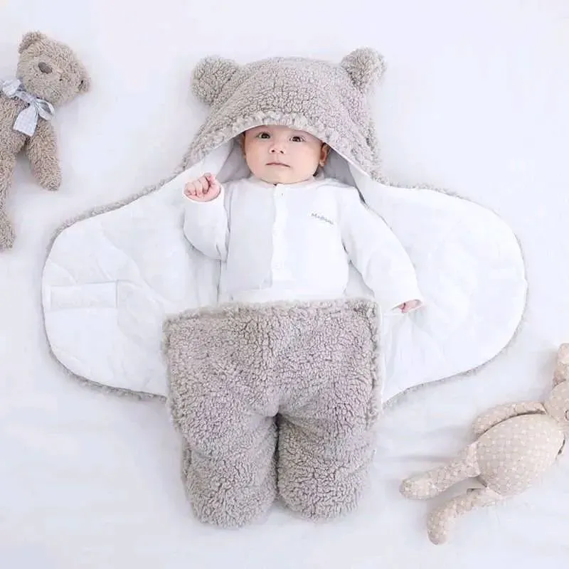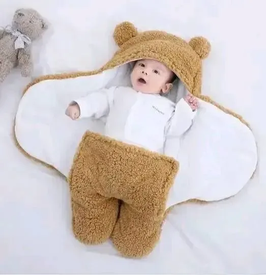 أفضل هدية تقدمها لرضيعك و الحل الأمثل في أجواء الشتاء الباردة بطانية الصوف بشكلها الظريف على شكل دب و الوانها الجذابة يمكن استعمالها ك (قماط) او غطاء نوم مع حماية من الرأس حتى القدمين جد ناعمة و دافئة مصنوعة من مواد طبيعية لحماية طفلك من البرد و راحة داخل البطانية صالحة للأطفال من 0 الى 12 اشهر سهلة الإستخدام و مناسبة حتى عند السفر و الخرجات